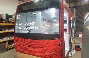 Cummins BusworldOnce again we got the call from the UK compnay that deals with all of Cummins European exhibition signage.In the past we have wrapped tractor units, 40ft artic trailers and this time it was a full wrap on a bus. The bus was being built to demonstrate the future electric vehicle technology that will one day be common place and will be used at exhibitions in Europe and the USA. After an initial site visit to survey the project, we offered advice on how best to achieve the finish required by Cummins as well as a time frame to complete the work. Once the artwork was received from the customer it was put into production and the printed panels for the wrap were ready for install a few days later, fitting the wrap itself was done over 3 days with specific start and finish dates so we did not interfere with the rest of the build that was ongoing at the same time. We met this deadline as requested and within a couple of weeks of us finishing, the bus was on display at Busworld Europe in Brussel's for the world to see. |