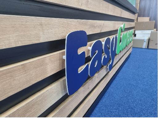 The most common material we use on the laser is acrylic and most of this is flat cut letters. Acrylic comes is set colours but we often wrap the panel before cutting to create the letters in any colour or pattern.